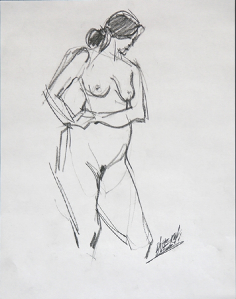 "Nude Female Hands on Her Hip"